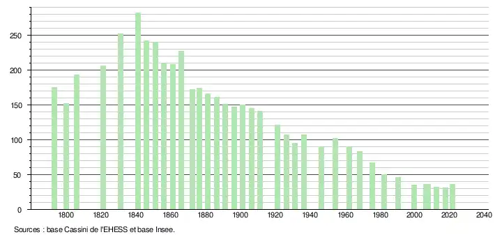 Le maximum de la population a été atteint en 1841 avec 282 habitants.