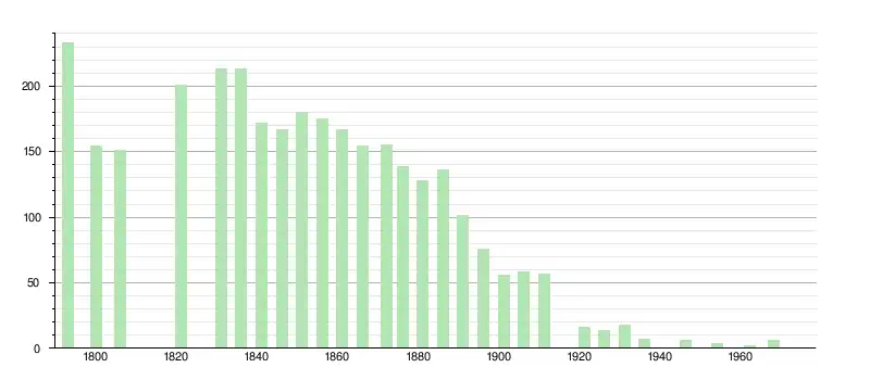 La commune subit un important exode rural à partir des années 1850. Elle est également touchée par les épisodes mortels régionaux ou nationaux : épidémies de choléra puis guerres mondiales (hommes morts au front durant la Première Guerre mondiale). Durant la Seconde Guerre mondiale, le département est occupé par l'Italie de à , puis par l'Allemagne nazie jusqu'en .
