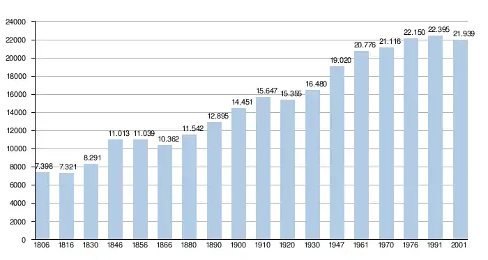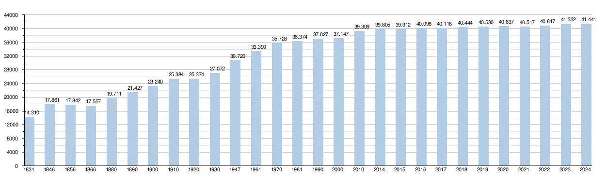 - Source : DGS - Remarque : 1831 jusqu'à 1981 = recensement ; depuis 1990 = nombre d'habitants chaque 1er janvier[8]