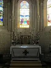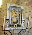 Une relique (un os) a été volée en 1820 par des ouvriers chargés de réparer la chasse qui la renfermait. Dans ce même courrier, l'évêque confie que depuis cette disparition, « les habitants sont moins confiants dans leur bienheureux patron et paraissent moins l'honorer »[37]. Sa statuette trône dans l'église face à l'entrée latérale.