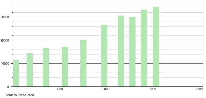 L'évolution du nombre d'habitants est connue à travers les recensements de la population effectués dans la commune depuis 1961, premier recensement postérieur à la départementalisation de 1946. À partir de 2006, les populations légales des communes sont publiées annuellement par l'Insee. Le recensement repose désormais sur une collecte d'information annuelle, concernant successivement tous les territoires communaux au cours d'une période de cinq ans. Pour les communes de plus de 10 000 habitants les recensements ont lieu chaque année à la suite d'une enquête par sondage auprès d'un échantillon d'adresses représentant 8 % de leurs logements, contrairement aux autres communes qui ont un recensement réel tous les cinq ans[16],[Note 3].