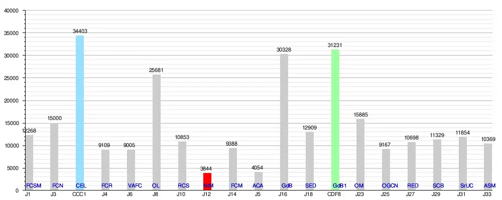 La capacité du stade est passé cette année à 39570 places.