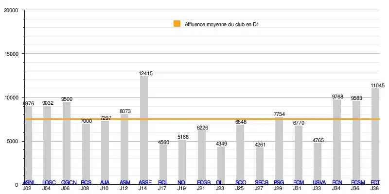 L'affluence à domicile du Stade lavallois atteint un total de 143 388 spectateurs en 19 rencontres de Division 1, soit une moyenne de 7 547/match.