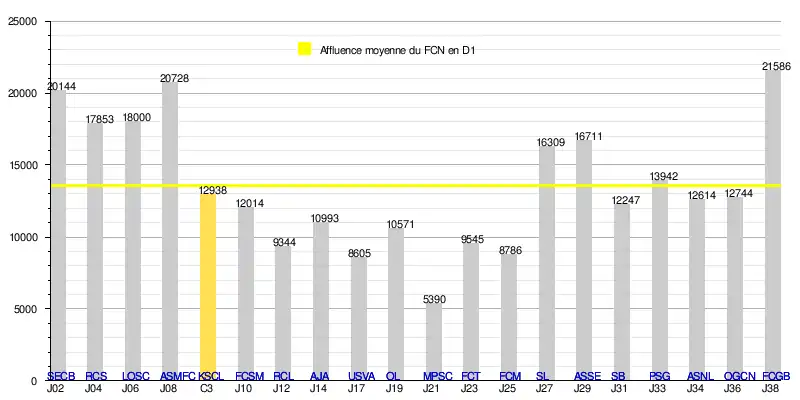- de 271 064 spectateurs en 20 rencontres toutes compétitions confondues, soit une moyenne de 13 553/match.
