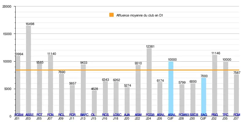 - de 159.923 spectateurs en 19 rencontres de Division 1, soit une moyenne de 8.417/match,