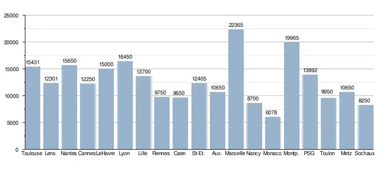 Affluence du Nîmes Olympique à domicile en championnat[5]