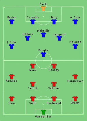 | Dynamo Kiev | Ext. | 4 – 2 | Ferdinand 10e, Rooney 18e, Ronaldo (2) 41e, 68e (pen) | 43 000 | 1re | |