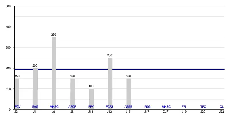 | 04/11/2012 | Journée 7 | Paris SG | Ext. | 0-5 | - | 10e | 300 |