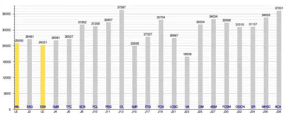 | Date-heure | No. | Adversaire | Lieu | Résultat | Buteurs pour l'ASSE | Buteurs adverses | Classement | Affluence | Diffuseur |