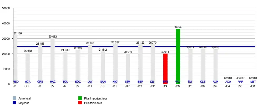Affluence du Racing Club de Lens à domicile, lors de la saison 2015-2016