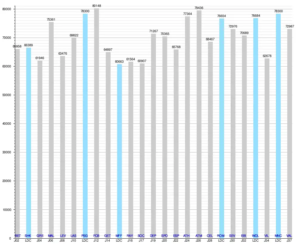 | 7 | Séville FC C3 | 52 | 38 | 14 | +1 |