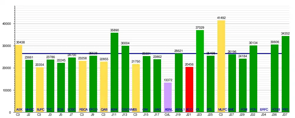 NB : Le match contre le Stade rennais s'est joué à huis clos à la suite d'une décision de la Ligue de football professionnel