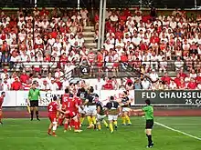 Essai(s) : Synaeghel (5e), Le Bourhis (40e), essai collectif (77e) Transformation(s) : Le Bourhis (40e) Carton(s) jaune(s) : Soqeta (70e) Carton(s) rouge(s) : Gimenez (65e)  | |||
