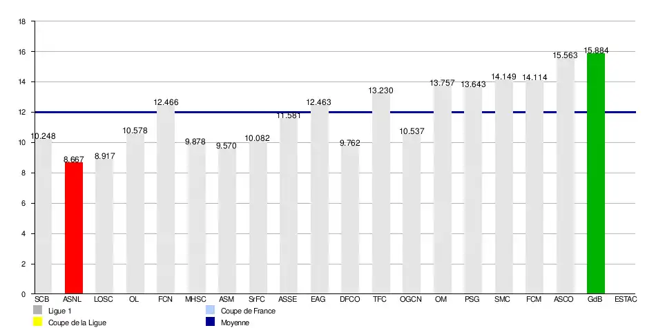 Total de 228 089 spectateurs en 19 matchs à domicile (12 005/match) en Ligue 1.