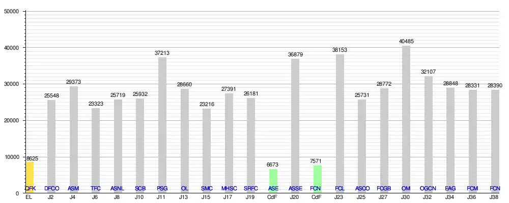 | Ligue 1 | - | - | 38 | 13 | 7 | 18 | 40 | 47 | -7 |