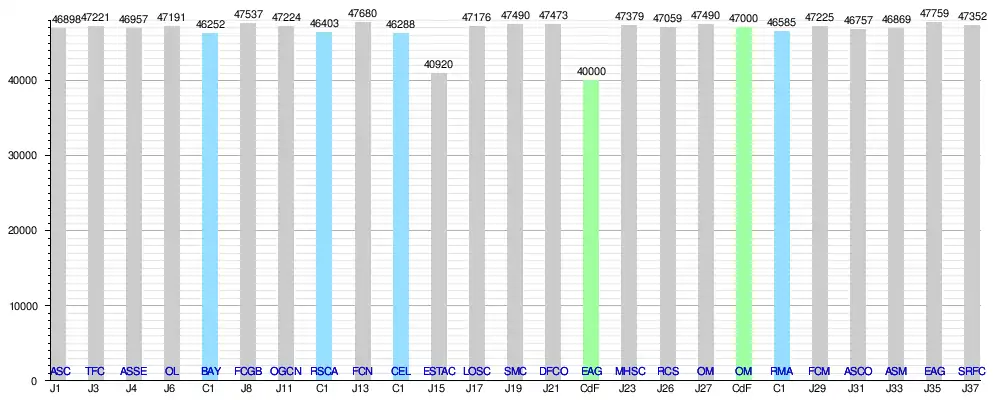 | Ligue 1 | - | Vainqueur | 38 | 29 | 6 | 3 | 108 | 29 | +79 |
