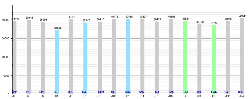 | 6 | Bologne FC | Serie A | 40 461 | ||