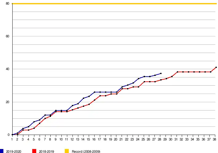 | Total | 21 joueurs | 46 buts | 32 passes | 78 |