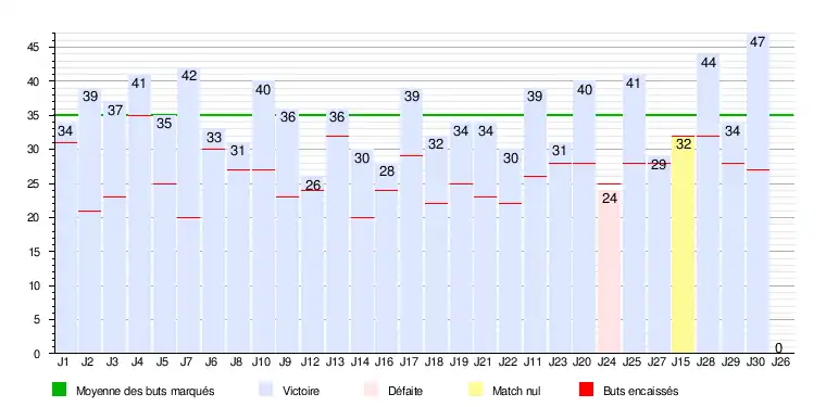 Ce graphique représente le nombre de buts marqués lors de chaque journée du championnat.