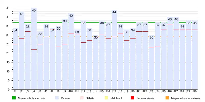 Ce graphique représente le nombre de buts marqués lors de chaque journée du championnat.