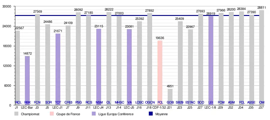 | 26 | jeu. | 25 novembre | 18 h 45 | Ligue Europa Conférence | Groupes - 5 | D | 3 - 3 | 1er | 23 081 | |