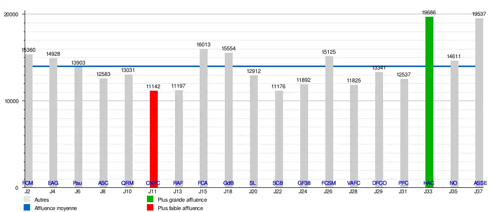 | Samedi | 19h00 | 15 | FC Annecy | Dom. |  0 - 0 | 23 | 5e | 16 013 | Mbock, Brahimi, Ntim | ||