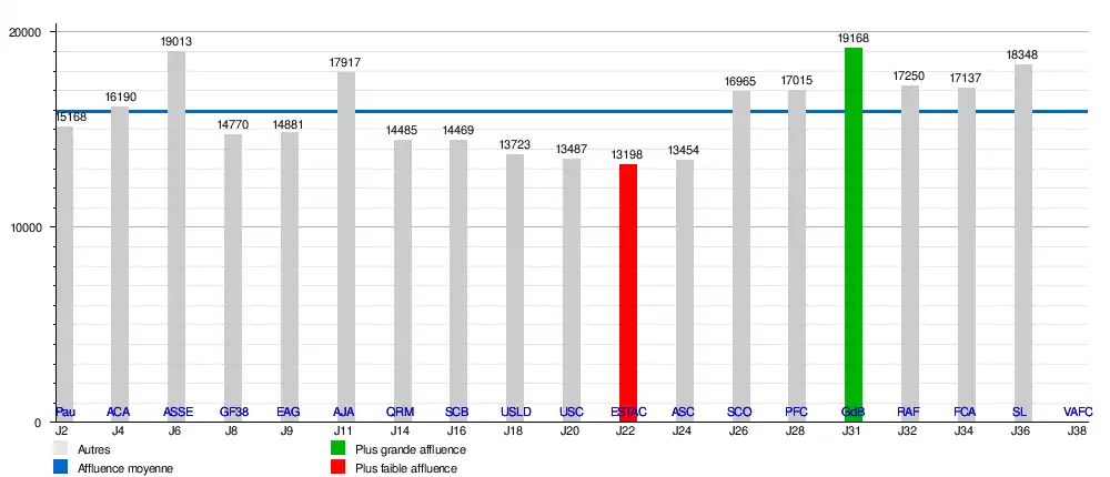 | Samedi | 19h00 | 22 | ESTAC | Dom. |  0 - 0 | 33 |  6e | 13 198 | Lebreton, Traoré | ||