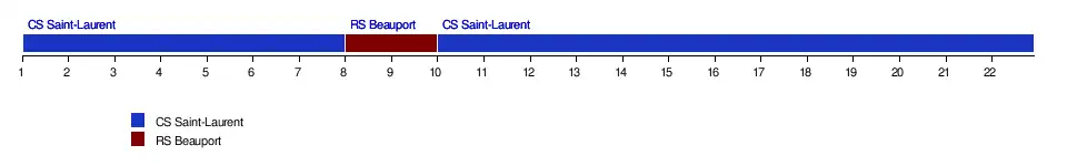 | Saint-Laurent | 1 | 1 | 1 | 1 | 1 | 1 | 1 | 2 | 2 | 1 | 1 | 1 | 1 | 1 | 1 | 1 | 1 | 1 | 1 | 1 | 1 | 1 | 20 |