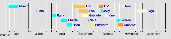 | Saison cyclonique 2001 dans l'océan Atlantique nord | |||||||||||||||||||||