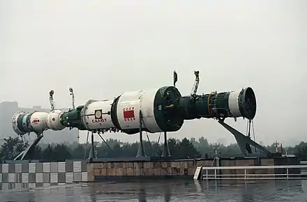 Saliout (du russe Салют signifiant « Salut » en français) est une famille de stations spatiales soviétiques. La première station de la série, Saliout 1, est lancée en 1971. Avec une masse de 19 tonnes correspondant à la capacité de lancement de la fusée Proton, la station dispose d'un espace habitable de 100 m3 permettant d'accueillir un équipage permanent de trois cosmonautes. La relève des équipages est effectuée par des vaisseaux Soyouz. Les premiers modèles ne permettent l'accouplement que d'un seul vaisseau. À partir de Saliout 6, un deuxième port d'amarrage permet le ravitaillement par les vaisseaux automatiques Progress et l'accueil d'équipages visiteurs pour de courts séjours. Ces nouvelles capacités permettent aux Soviétiques de réaliser des missions de plus en plus longues démontrant les capacités de l'homme à séjourner dans l'espace.