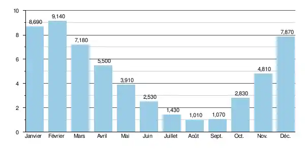 Le module de la rivière à Denèvre est de 4,64 m3/s.