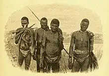 Chasseurs nomades (Bochimans Masarwa), nord du désert du Kalahari, publiée en 1892 (d'après une photogr. de Henry Anderson Bryden (en)).