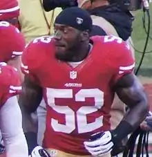La saison catastrophique des 49ers est également marquée par le début d'un mouvement de protestation contre le racisme et les violences policières envers les minorités aux États-Unis. Ce mouvement est initié par le quarterback des 49ers, Colin Kaepernick[11]. En pleine élection présidentielle, le joueur devient un personnage clivant. Il est pris à partie par une partie de ses supporteurs et le président Donald Trump. À la fin de la saison 2016, Kaepernick devenir agent libre après avoir utilisé une option de contrat pour mettre fin à sa relation avec les 49ers.