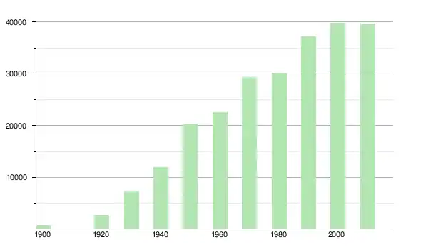 | 1950 | 20 343 | ▲ +71,42 % | |