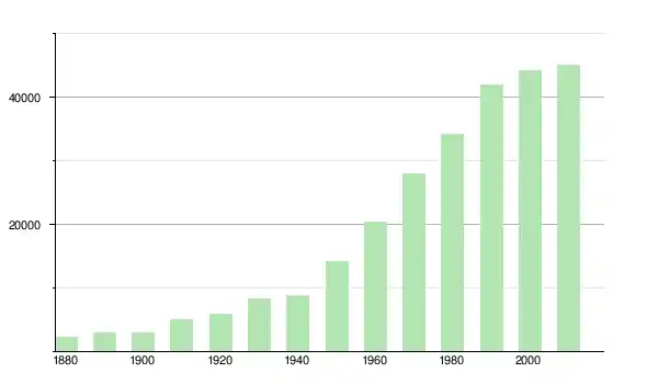 | 1950 | 14 180 | ▲ +59,67 % | |