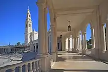 Cet ensemble architectural (débuté en 1949 et terminé en 1954) est l’œuvre d'António Lino et est composé de 200 colonnes et demi-colonnes, et de 14 autels. Il consiste en deux ailes courbes encadrant de façon symétrique la façade de la basilique et fermant de ce côté la perspective de l'esplanade ; on y accède depuis cette dernière par des marches ménagées sur une grande partie de leur longueur. La colonnade est surmontée par 18 statues de saints (statues de 2,30 à 3,20 mètres) dont les congrégations sont représentées à Fátima, ou de saints qui par leurs écrits et leurs prêches ont été des promoteurs du culte marial : Jean de Dieu, Jean de Britto, Antoine de Padoue, Nuno Álvares Pereira (3,20 mètres) puis Thérèse d'Avila, François de Sales, Marcellin Champagnat, Jean-Baptiste de La Salle, Alphonse de Liguori, Jean Bosco, Dominique Savio, Louis-Marie Grignion de Montfort, Vincent de Paul, Simon Stock, Ignace de Loyola, Paul de la Croix, Jean de la Croix, Beatriz da Silva (2,30 mètres).