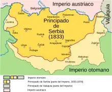 En 1833, par le traité d'Unkiar-Skelessi, la Russie oblige l'empire ottoman à restituer à la principauté de Serbie six districts qui en avaient été détachés en 1813 : Krajna, Ceaceak, Alacahisar, Timok, Crna Reka et Užice[9]. Alacahisar reprend son nom slave de Kruševac. Par une lettre du , les chefs de district serbes, réunis au tribunal de Kruševac, annoncent au prince Miloš Obrenović qu'ils ont entrepris la restauration des églises chrétiennes, tombées à l'abandon sous la domination turque[10].