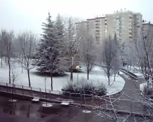 - Le quartier a un trafic fluide, sauf dans la rue Jacinto Benavente, qui est parfois dense, bien qu'on prétende l'alléger avec l'ouverture de nouveaux ponts à Salburua[3] il existe des difficultés de stationnement dans tout le quartier, très coutumiers des doubles files.