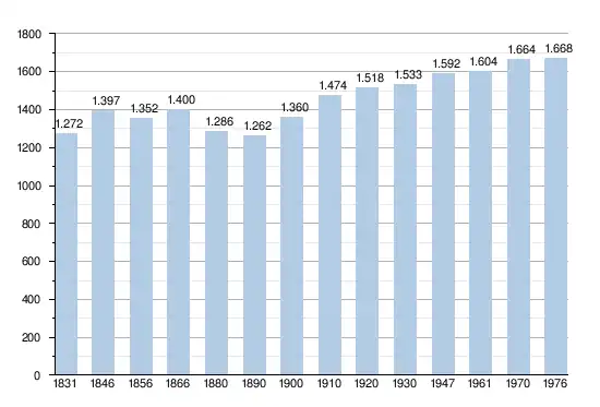 - Sources : INS, Rem. : 1831 jusqu'en 1970 = recensements, 1976 = nombre d'habitants au 31 décembre[2].