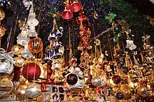 - d'autres suspensions de formes diverses ayant un rapport avec Noël, notamment des angelots, des Pères Noël, des miniatures d'objets en bois, des serpentins multicolore et même des bougies allumées ;