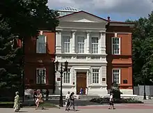 | .png.webp)  Dans le sens inverse des aiguilles d'une montre, en partant du coin supérieur droit : Conservatoire, Église de l'Intercession , administration municipale , séminaire théologique , moulin Schmidt, pont Saratov-Engels | ||||