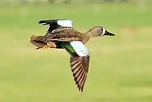 La Sarcelle à ailes bleues (Spatula discors, anciennement Anas discors), connue aussi en tant que Sarcelle soucrourou ou Canard soucrourou, est une espèce de canards de surface de la famille des Anatidae. C'est un oiseau américain qui peut exceptionnellement être aperçu en Europe[1],[2].