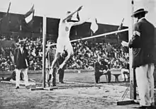 | 1908[8] | .svg.png.webp) Ray Ewry (USA) 1,57 m | .svg.png.webp) John Biller (USA) | |