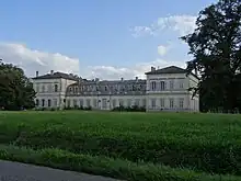 - Le château de Saint-Denis : Le château de Saint-Denis, dans sa forme actuelle, est une chartreuse édifiée au cours du XIXe siècle. Elle s'inspire très précisément d'une précédente chartreuse du XVIIIe siècle, ayant dû être abandonnée par ses occupants. Cette dernière se situait en effet à quelques dizaines de mètres du site actuel, mais à un niveau plus bas, ce qui la rendait vulnérable aux crues de la Garonne toute proche. Le bâtiment se présente sous la forme d’un corps de logis central à un niveau couvert par une toiture à la Mansart, percée de mansardes, encadré par deux pavillons à deux niveaux. Les communs, qui comprennent une orangerie, sont organisés sur une cour en U ouverte à l’ouest. Ils sont antérieurs à la reconstruction du château. Le parc se développe principalement au sud-ouest du château, mais il comprend une pelouse dégagée au nord et il s’étire à l’ouest vers le village sous forme d’un triangle. C’est dans cet angle nord-ouest, en bord de route que se trouve l’entrée principale, soulignée par une demi-lune de bornes en pierre qui encadre l’extrémité d’une allée courbe[33]. Le domaine de Saint Denis appartient à la famille de Bastard, originaire du comté Nantais, qui s'établit dès le XVe siècle en Gascogne, près de Fleurance. La Ségneurie Saint Denis fut acquise par Dominique de Bastard en 1667[34].