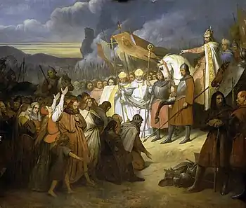 En 776, les Saxons promettent de se soumettre et de se convertir au christianisme.