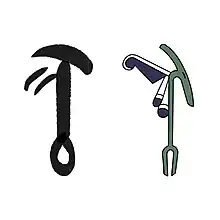 | C'est un idéogramme dans le terme Wȝs.t : | « Celle du sceptre (Thèbes ville et nome) »[1] et sa variante |