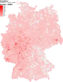 Répartition du nom de famille Schäfer en Allemagne (2005).