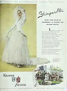 Pendant la guerre, Elsa Schiaparelli reste aux États-Unis[47],[48]. Les salons de la maison à Paris sont alors dirigés par sa collaboratrice Irène Dana[49]. Aux États-Unis, Elsa Schiaparelli accorde des licences à quatre fabricants américains pour produire des vêtements dont l'étiquette indique « Authorized Schiaparelli Reproduction - Special Collection 1940 »[50]. L'argent obtenu par ces licence est destiné à soutenir les maisons de couture parisienne souffrant de l'arrêt de l'économie française dû à la guerre[51].
