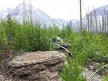 Affleurements de schistes de Burgess vus derrière le lac Émeraude.