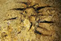 - Ces résidus sont probablement des restes fossilisés d'échinodermes, de brachiopodes et de trilobites[61].